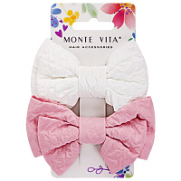 Заколки для волос НАБОР 2 шт., 10х6,5 см, зажим, с бантиком, розовый, белый, MONTE VITA (МОНТЕ ВИТА), 457110