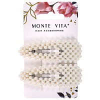 Заколка для волос 16х14 см, баретте с бантом и бусинами, белый, MONTE VITA (МОНТЕ ВИТА), 457120