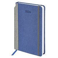 Ежедневник датированный 2026, А5, 138x213 мм, BRAUBERG "Profile", балакрон, синий, 117073