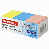 Блоки самоклеящиеся (стикеры) BRAUBERG 38х51 мм, 100 листов, НАБОР 12 штук, 3 неоновых цвета, 111345