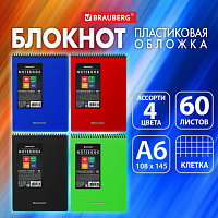 Блокнот МАЛОГО ФОРМАТА А6, 60 л., обложка пластик, клетка, BRAUBERG "Metropolis", АССОРТИ, 115578