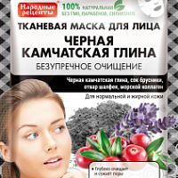 Арт.3862 ФИТО К Тканевая маска для лица Черная КАМЧАТСКАЯ ГЛИНА "Народные Рецепты" 25мл/25шт