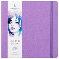 Скетчбук для акварели 18л. 200*200 Greenwich Line, сиреневый, 100% хлопок, 200 г/м2, на резинке