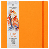 Скетчбук для акварели 18л. 200*200 Greenwich Line, оранжевый, 100% хлопок, 200 г/м2, на резинке