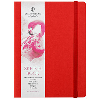 Скетчбук для акварели 18л. 150*200 Greenwich Line, красный, 100% хлопок, 200 г/м2, на резинке