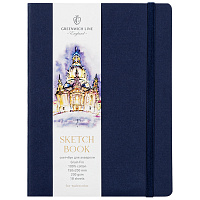 Скетчбук для акварели 18л. 150*200 Greenwich Line, темно-синий, 100% хлопок, 200 г/м2, на резинке