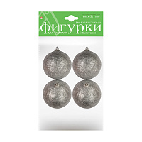 ПЕНОПЛАСТОВЫЕ ФИГУРКИ. ШАРЫ С ГЛИТТЕРОМ, СЕРЕБРО. ? 60 ММ, 4 ШТ.