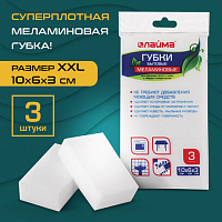 Губка бытовая МЕЛАМИНОВАЯ, КОМПЛЕКТ 3 шт., для удаления пятен, 10х6х3 см, ЛАЙМА, 605035