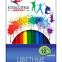 Набор цветных карандашей КЛАССИКА 12 цветов, шестигранные дерев.