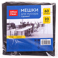 Мешки для мусора 60л OfficeClean ПНД, 58*68 см, 12мкм, 20шт., черные, в пластах, с ручками