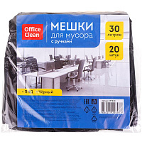 Мешки для мусора 30л OfficeClean ПНД, 48*56 см, 10мкм, 20шт., черные, в пластах, с ручками