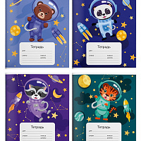 Комплект тетрадей 12 листов, в клетку, ВЕСЕЛЫЕ ЗВЕРЯТА мел. карт. ВД-лак, 20 штук
