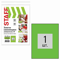 Этикетка самоклеящаяся 210х297 мм, 1 этикетка, зеленая, 80 г/м2, 50 листов, STAFF, 115230