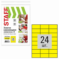 Этикетка самоклеящаяся 70х37,1 мм, 24 этикетки, желтая, 80 г/м2, 50 листов, STAFF, 115184