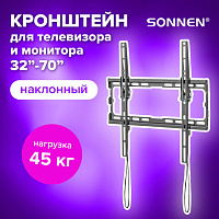 Кронштейн-крепление для ТВ настенный, до 45 кг, VESA 75х75-400х400, 32"-70", черный, SONNEN, 455949
