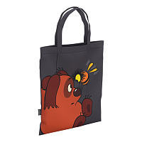 Сумка-шоппер BRAUBERG, канвас, 40х35 см, черный, "Smiley", 271900