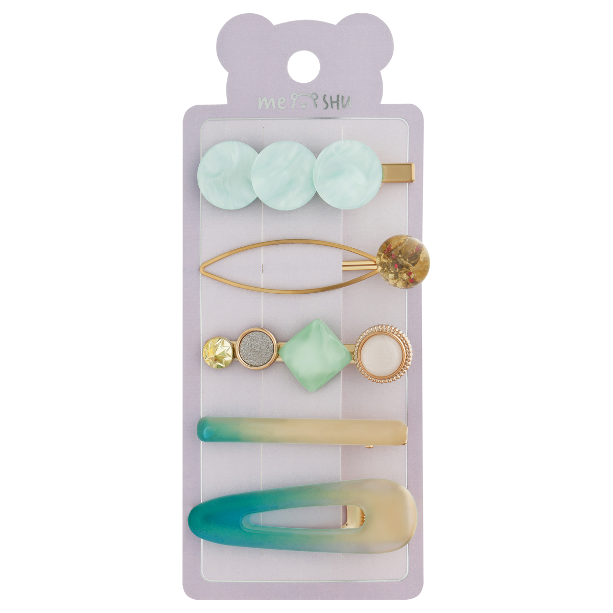 Заколки для волос MESHU, цвет бирюза, 5 штук, европодвес