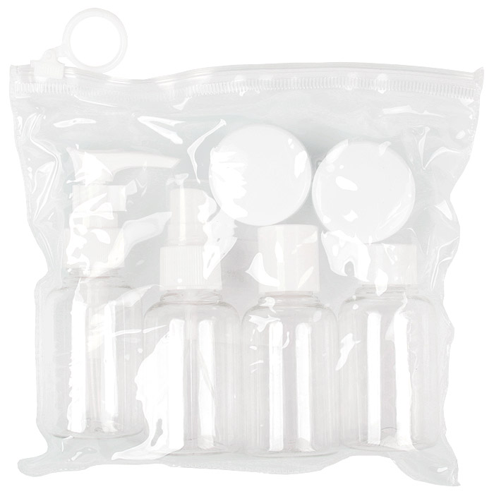 Дорожный набор из 4 бутылочек (35мл) + 2 баночки (10мл) в прозрачной косметичке на зип-застёжке. Размер упаковки16х18х4 см. Ассорти цвет.