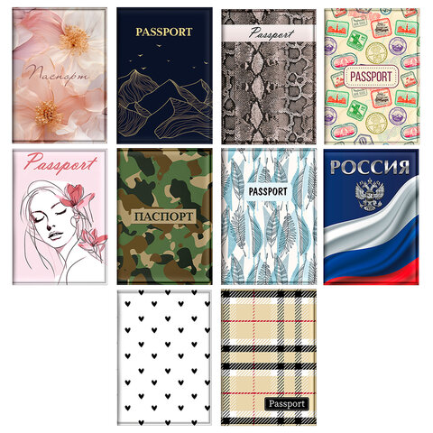 Обложка для паспорта "Cool Mix 3", мягкая вставка изолон, 10 дизайнов ассорти, цветной принт, ПВХ, STAFF, 238860