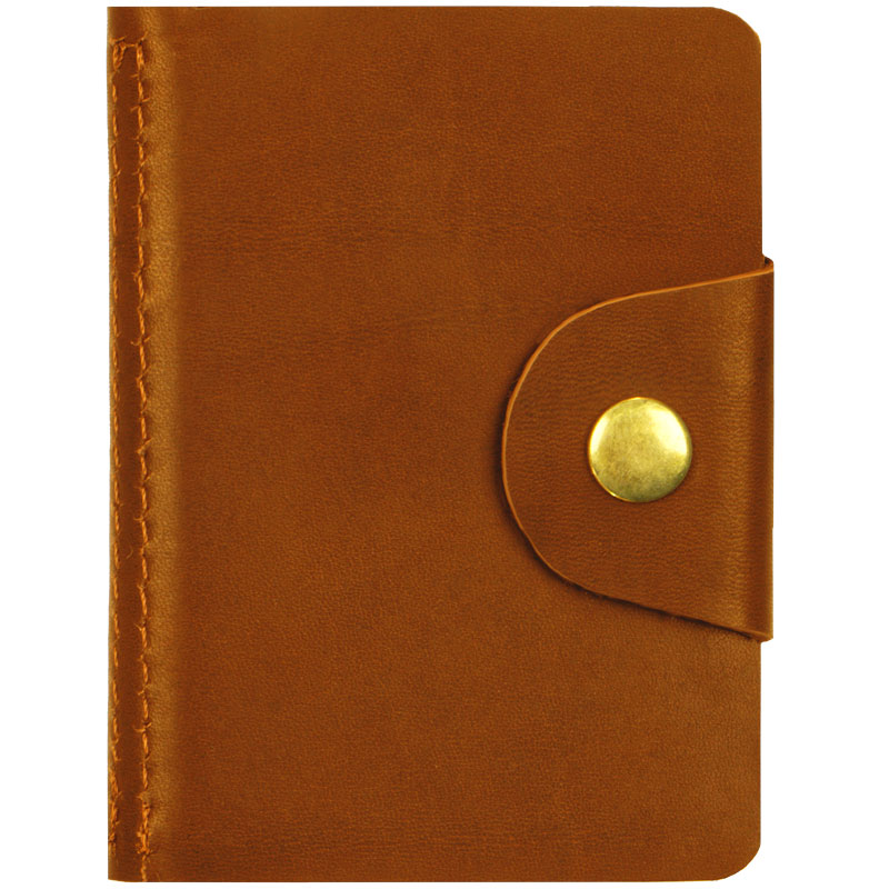 Визитница карманная OfficeSpace на кнопке, 10*7 см, 18 карманов, натуральная кожа, светло-коричневый