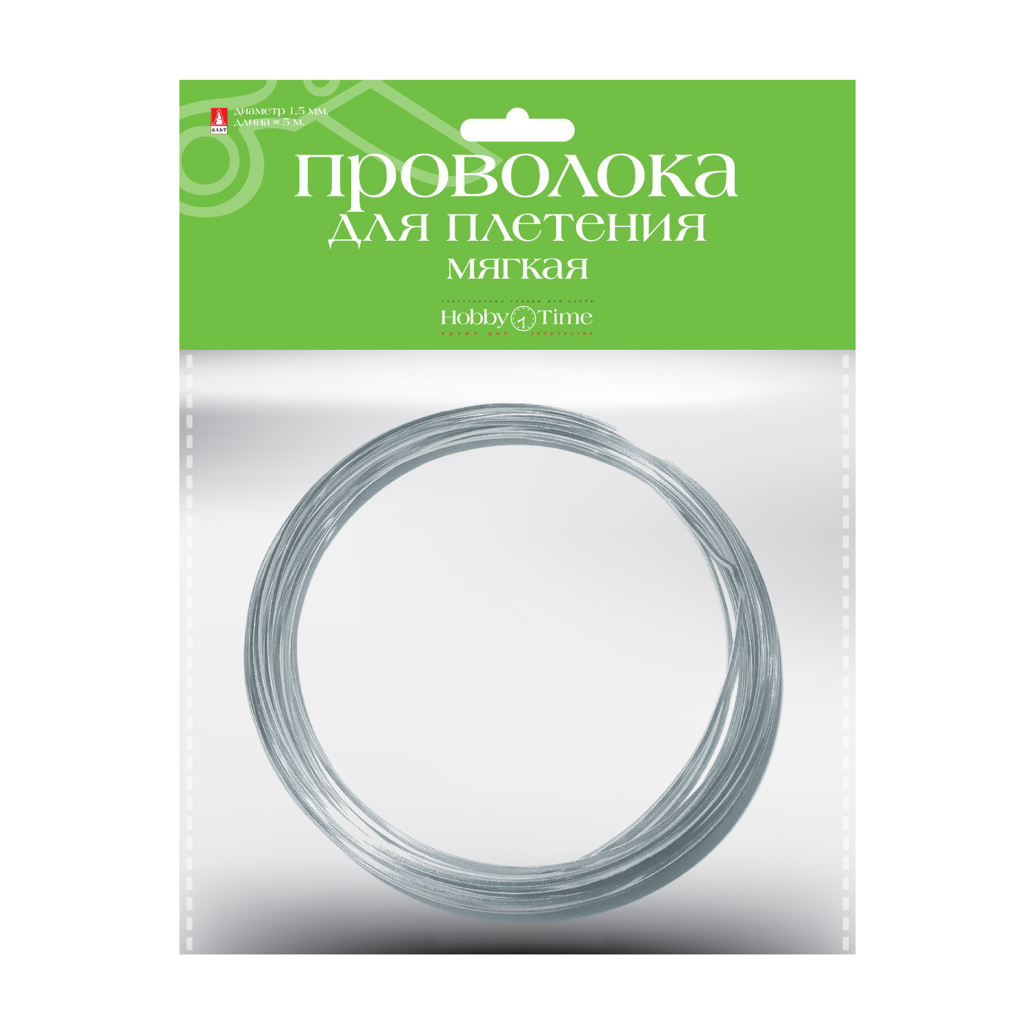 ПРОВОЛОКА ДЛЯ ДЕКОРА И ПЛЕТЕНИЯ МЯГКАЯ, ? 1.5 ММ, 5 М., СЕРЕБРЯНАЯ
