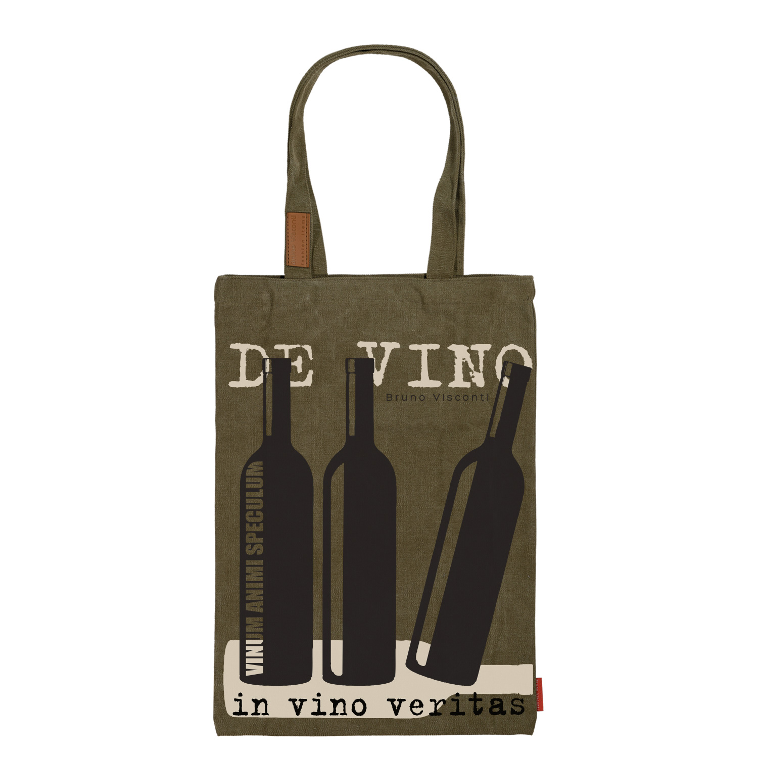 СУМКА-ШОППЕР С КАРМАНОМ, ЦВЕТ ХАКИ "IN VINO VERITAS" 35x47 cm