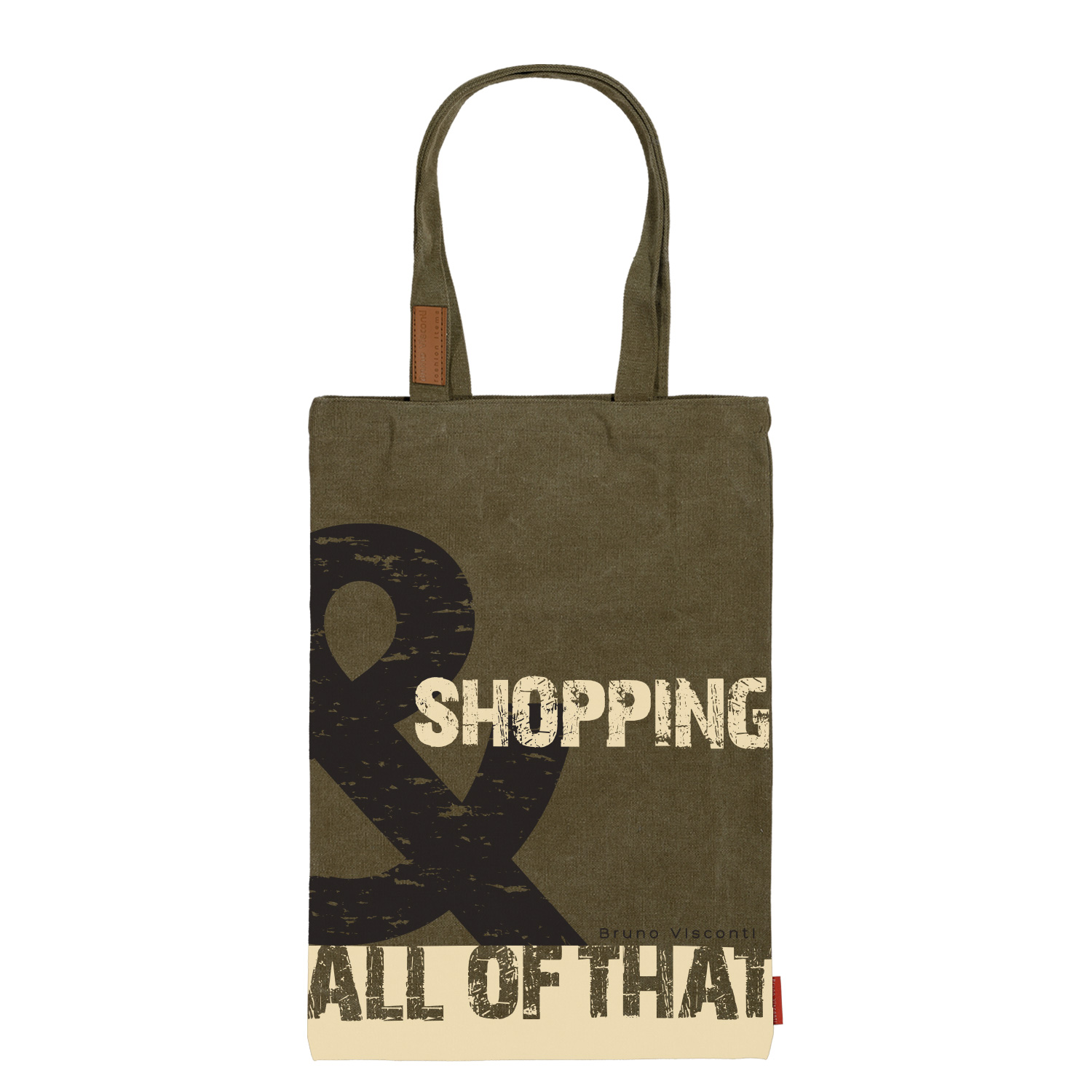 СУМКА-ШОППЕР С КАРМАНОМ, ЦВЕТ ХАКИ "SHOPPING &..." 35x47 cm