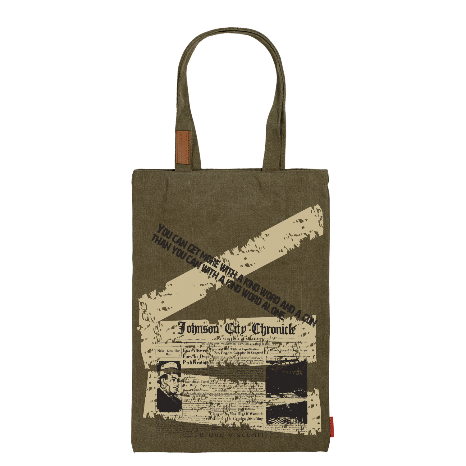 СУМКА-ШОППЕР С КАРМАНОМ, ЦВЕТ ХАКИ "ГАЗЕТНЫЕ ХРОНИКИ" 35x47 cm