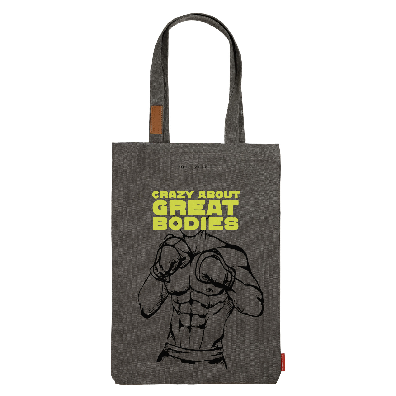 СУМКА-ШОППЕР С КАРМАНОМ, СЕРАЯ "GREAT BODIES" 35x47 cm