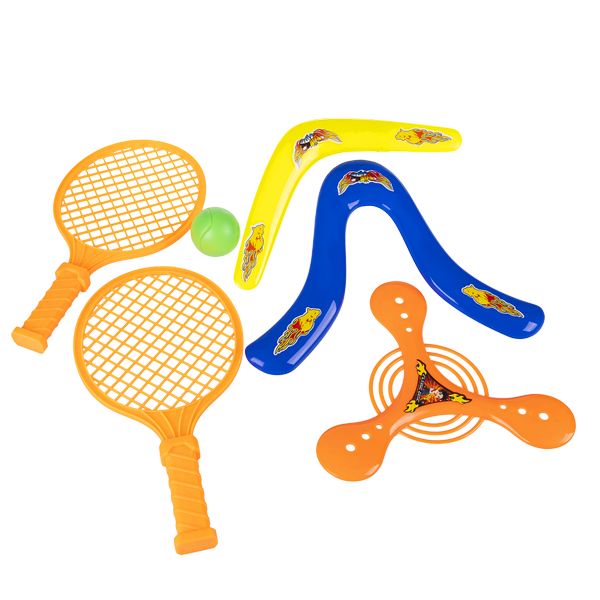 Набор игровой бумеранги 3 штуки, ракетки 2 штуки, с мячиком; в сетке 29х22х4 см, арт. 628-4