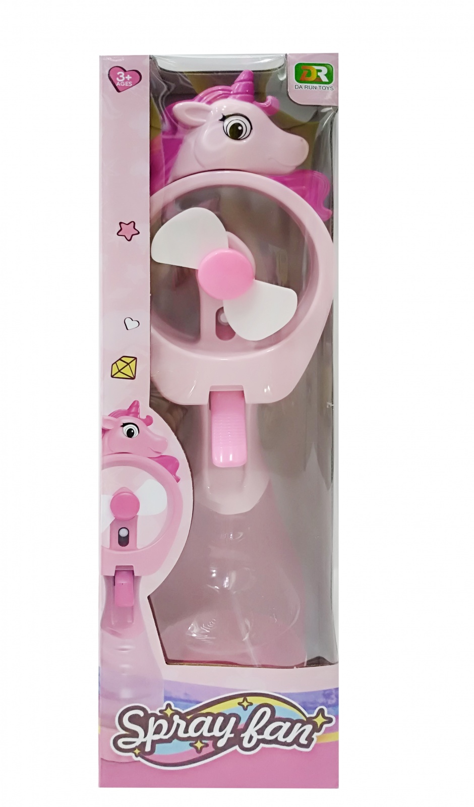Полуавтоматический распылитель воды «Единорог» – это удобный девайс для охлаждения в знойный день. Игрушку можно использовать как вентилятор (работает автоматически после нажатия кнопки, расположенной на корпусе игрушки), так и как ручной распылитель воды (для осуществления распыления воды необходимо нажимать на рычажок, расположенный на корпусе игрушки), предварительно наполнив емкость игрушки водою. Размер игрушки составляет 9,5*7,5*32 см. Для работы вентилятора-распылителя необходимы 2 батарейки типа АА, которые в комплект не входят. Световых и звуковых эффектов в игрушке нет. Емкость для воды составляет примерно 300 мл.