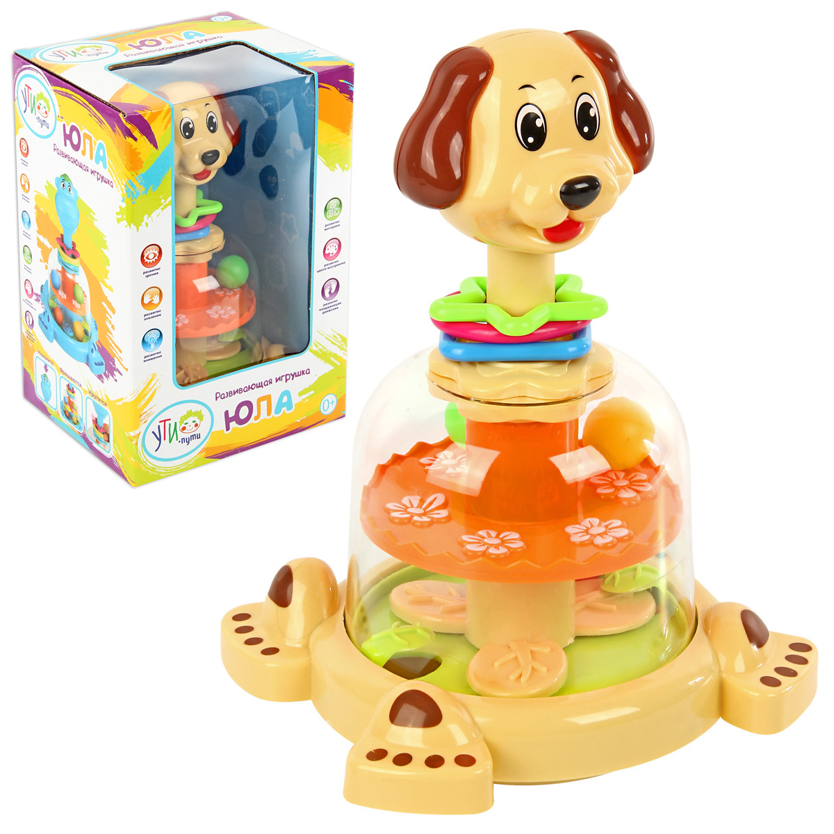 Юла в виде веселого песика. Игрушка способствует развитию воображения, сенсорных способностей, мелкой моторики рук, концентрации внимания, координации и последовательности движений.