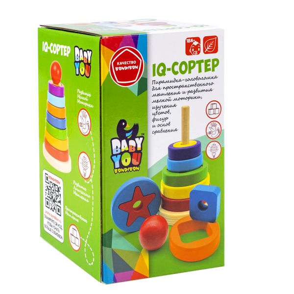 Игрушка деревянная Bondibon пирамидка - головоломка «IQ-СОРТЕР»
