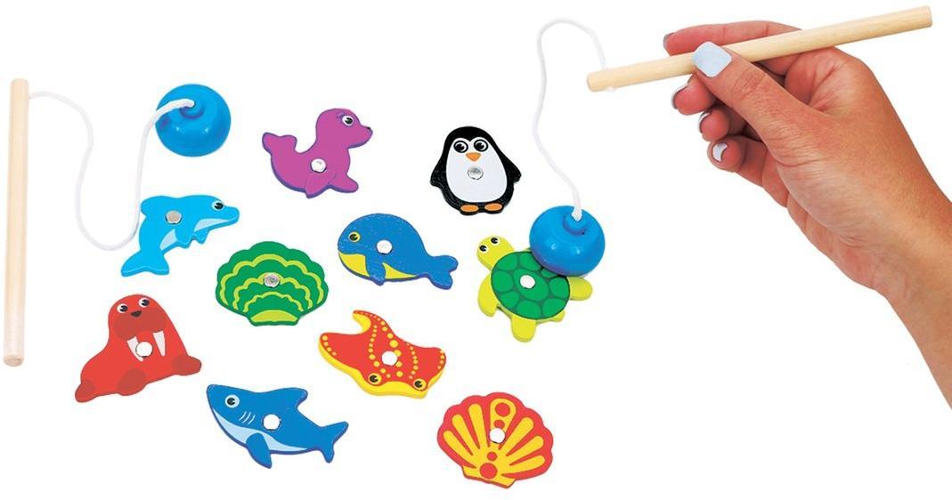 Захватывающая детская настольная игрушка «Рыбалка» предлагает малышу весело и с пользой провести время! В состав игры входят 2 магнитные удочки и 10 ярких магнитных фигурок морских обитателей, которых ребёнку предстоит поймать. Игрушка развивает сенсорные навыки, способность концентрировать внимание, моторику и координацию движений. Играть можно вдвоём или самостоятельно. Длина удочек составляет 35 см, длина фигурок: 5-6 см. Материалы изготовления: липа и чайное дерево. Рекомендованный возраст: 3 года +