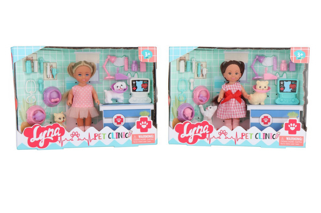 Случается, что любимые питомцы кукол болеют. Но это не беда, ведь набор ветклиники поможет вылечить питомца! Комплектность набора: кукла, щенок, котенок, 12 аксессуаров, монитор, 2 миски (с рыбкой, косточкой), картонный столик. Размер куклы составляет – 11,7 см.