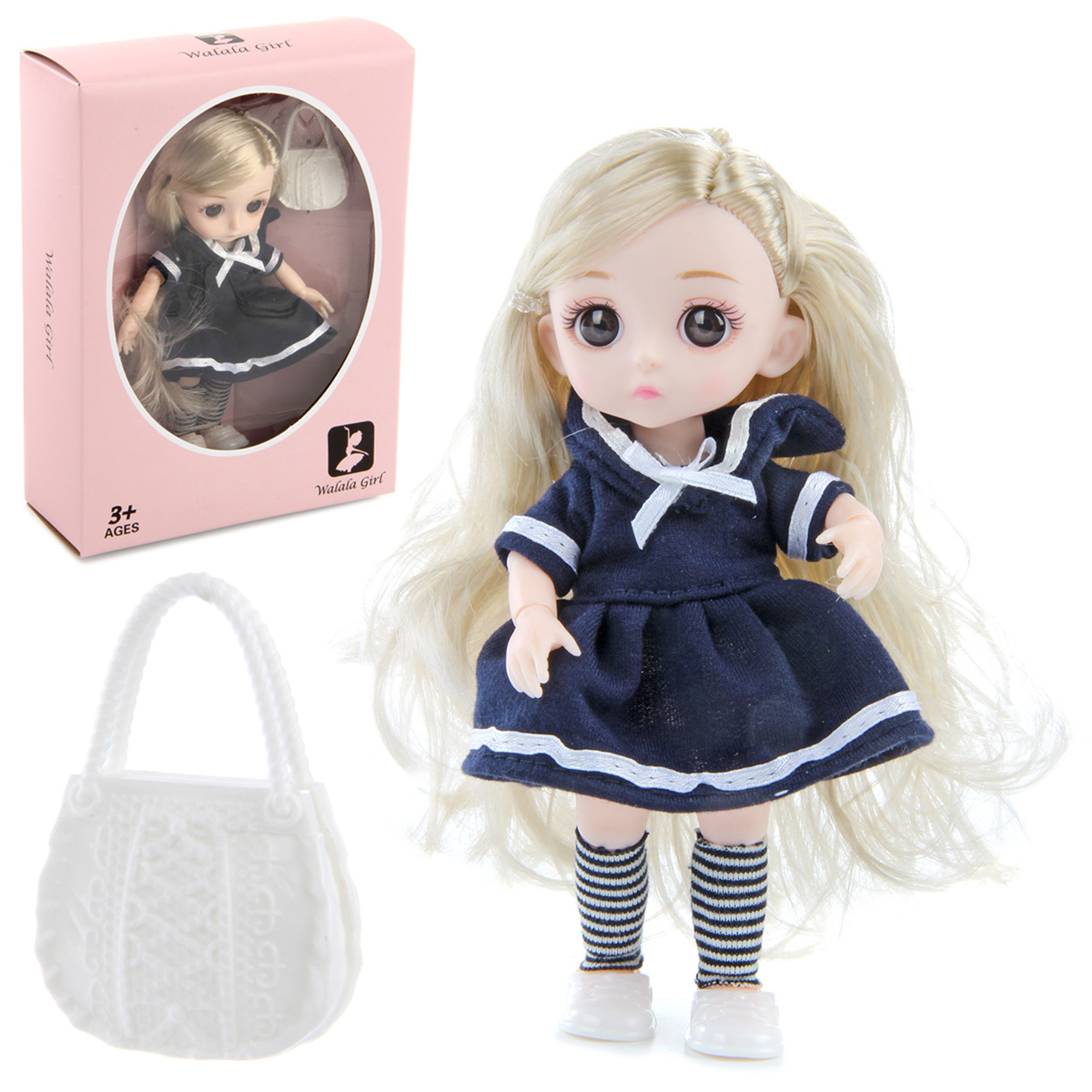 Куколка - замечательный подарок для каждой девочки. В комплект входят куколка и сумочка. У куколки двигаются ручки и ножки, крутится голова. Голова прошита волосами полностью, волосы длинные и красивые, можно делать разные прически. Куколка шарнирная, руки сгибаются в локтях и запястьях. Ножки сгибаются в коленях и щиколотках. Голова, ручки и ножки мягкие. Сумочка разбирается. Благодаря такой игрушке ребенок будет с удовольствием развивать мелкую моторику рук, координацию движений, воображение, зрительное восприятие, научится заботе и ответственности. Игрушка изготовлена из качественной и безопасной пластмассы, есть текстильные материалы. Размеры куколки: 16*7*5 см. Размеры сумочки: 5*3*1 см. Размеры коробки: 20*15*6 см.