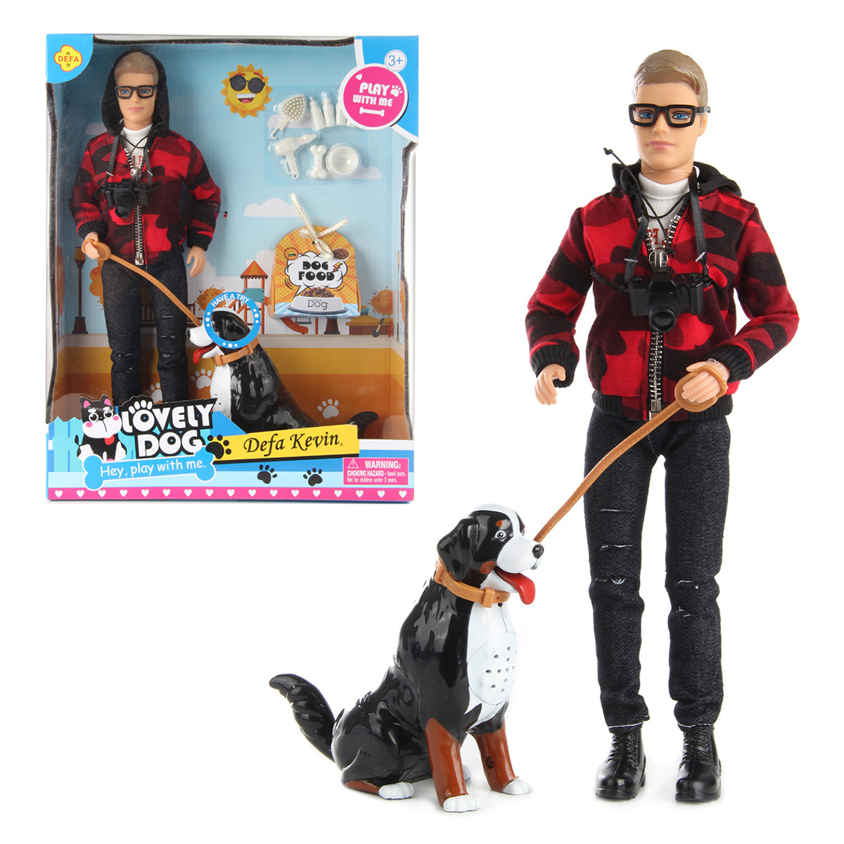 Кевин с питомцем обожают гулять! Берут с собой все необходимое и любуются городом! В комплект входят кукла, собачка, фотоаппарат, коробочка имитации собачьей еды, расческа, фен, миска, фигурка-имитация косточки, 4 бутылочки. У куклы ручки и ножки шарнирные, ручки сгибаются в локтях, ножки в коленях. Тело у куклы жесткое, голова мягкая. Ручки-ножки двигаются, голова крутится. У собачки снимается поводок, она умеет лаять, если нажать на кнопку на основании питомца, хвостик и язычок у собачки двигаются. Если погладить собачку по голове, она заскулит. Забота о такой кукле научит ребенка ответственности, будет развивать коммуникативные и социальные навыки, воображение, мелкую моторику ручек и координацию движений, позволит придумать множество интересных сюжетно-ролевых игр! Собачка работает от 3 батареек AG13, входят в комплект. Игрушка изготовлена из безопасной и качественной пластмассы, есть элементы текстильных материалов. Размеры куклы: 10,5*4*31 см. Размеры собачки: 15*5,5*13 см. Размеры коробки: 25,5*8,5*32 см.
