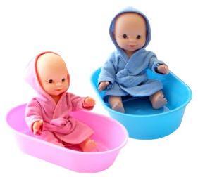 Пупс в ванночке - игрушка для сюжетно-ролевых игр.У куклы подвижные ручки и ножки.Высота куклы - около 22 см.Комплектность:кукла,ванночка,халат,соска.