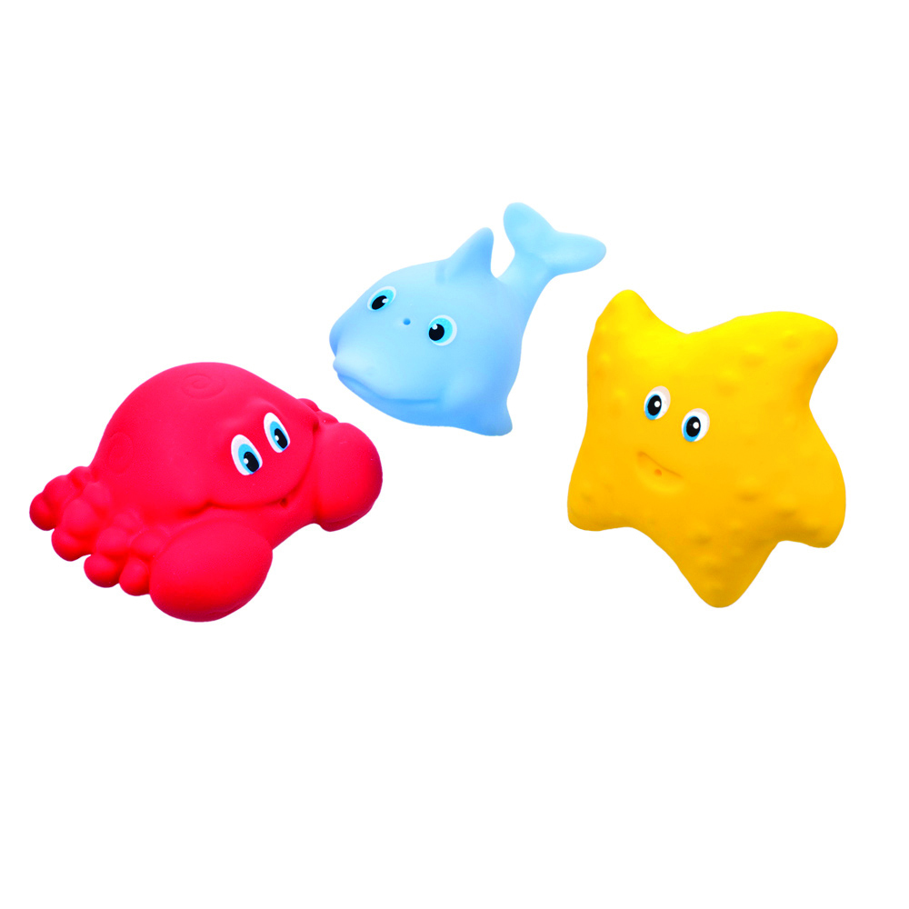 Набор игрушек для ванной (3 шт.) с функцией брызгалкок в ассортименте: 3 зверюшки водного мира или 3 зверюшки дикой природы. Материал: ПВХ-пластизоль. Упаковка: сетка + бирка