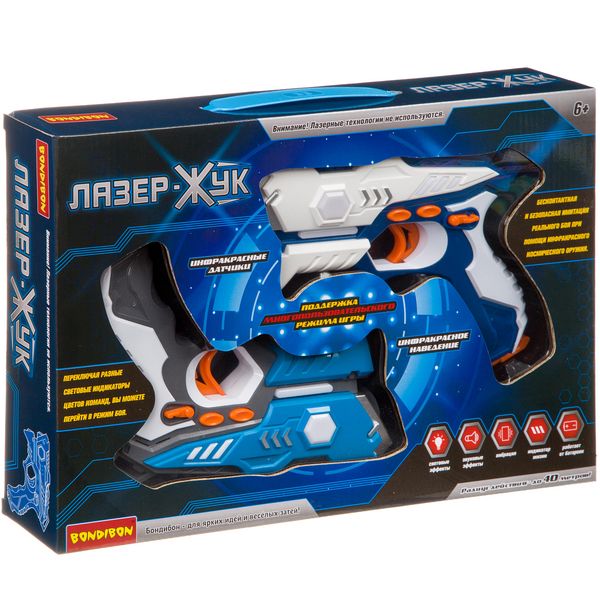 Оружие ЛАЗЕР-Жук Bondibon на батар.,набор из 2-х космических ик-бластеров, ВОХ 40,5х25,5х6,5см.