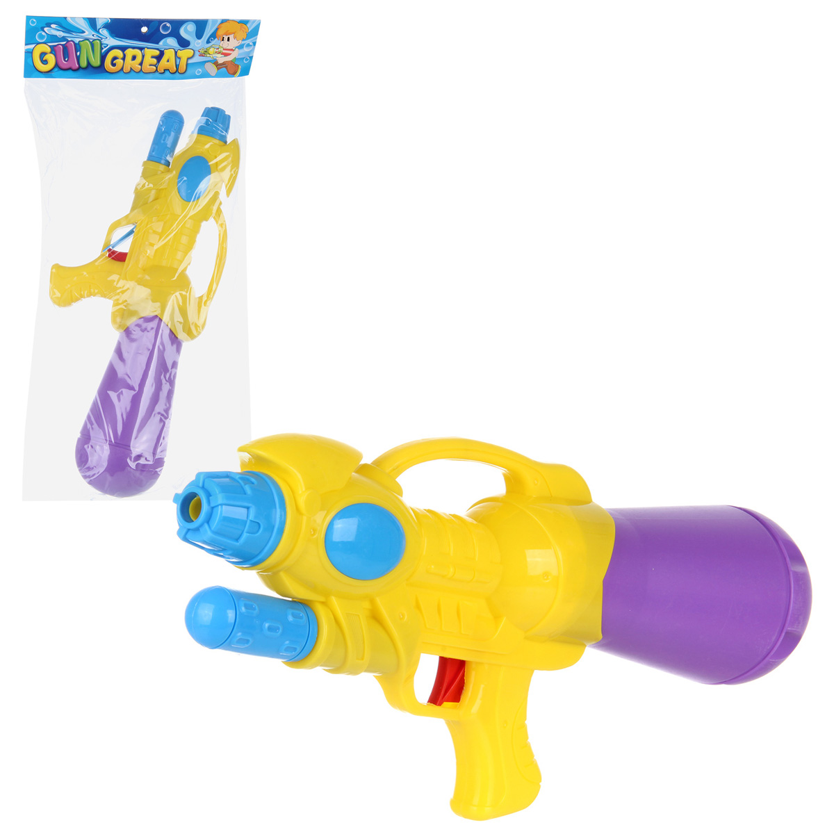 Откручиваем резервуар, наполняем водой. Возвращаем резервуар на место. Для выстрела передергиваем ручку под стволом и нажимаем на спусковой крючок, оружие выстрелит водой. Дальность выстрела от 5 до 7 метров. Полимер. Объем резервуара 600 мл. Размер оружия 42х8х19 см. Размер упаковки 25х11х52 см.