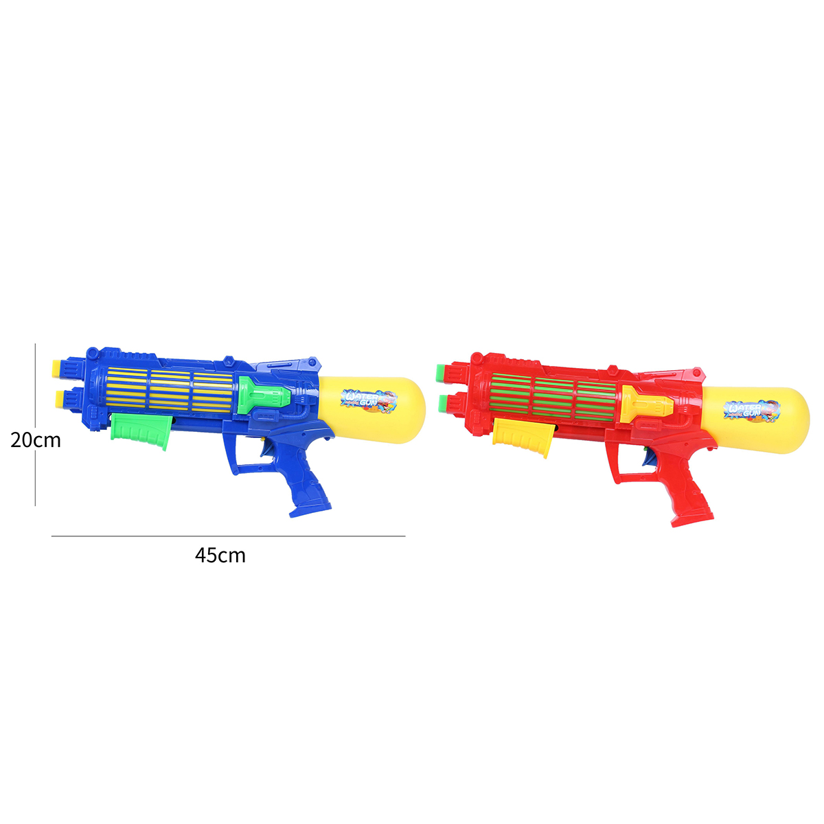 Откручиваем резервуар, наполняем водой. Возвращаем резервуар на место. Для выстрела передвигаем ручку под стволом, нажимаем на спусковой крючок, оружие выстрелит водой. Оружие имеет 2 дула, оба стреляют водой. Полимер. Объем резервуара 550 мл. Дальность выстрела от 5 до 7 метров. Размер оружия 45х8х19 см. Размер упаковки 24х8х53 см.