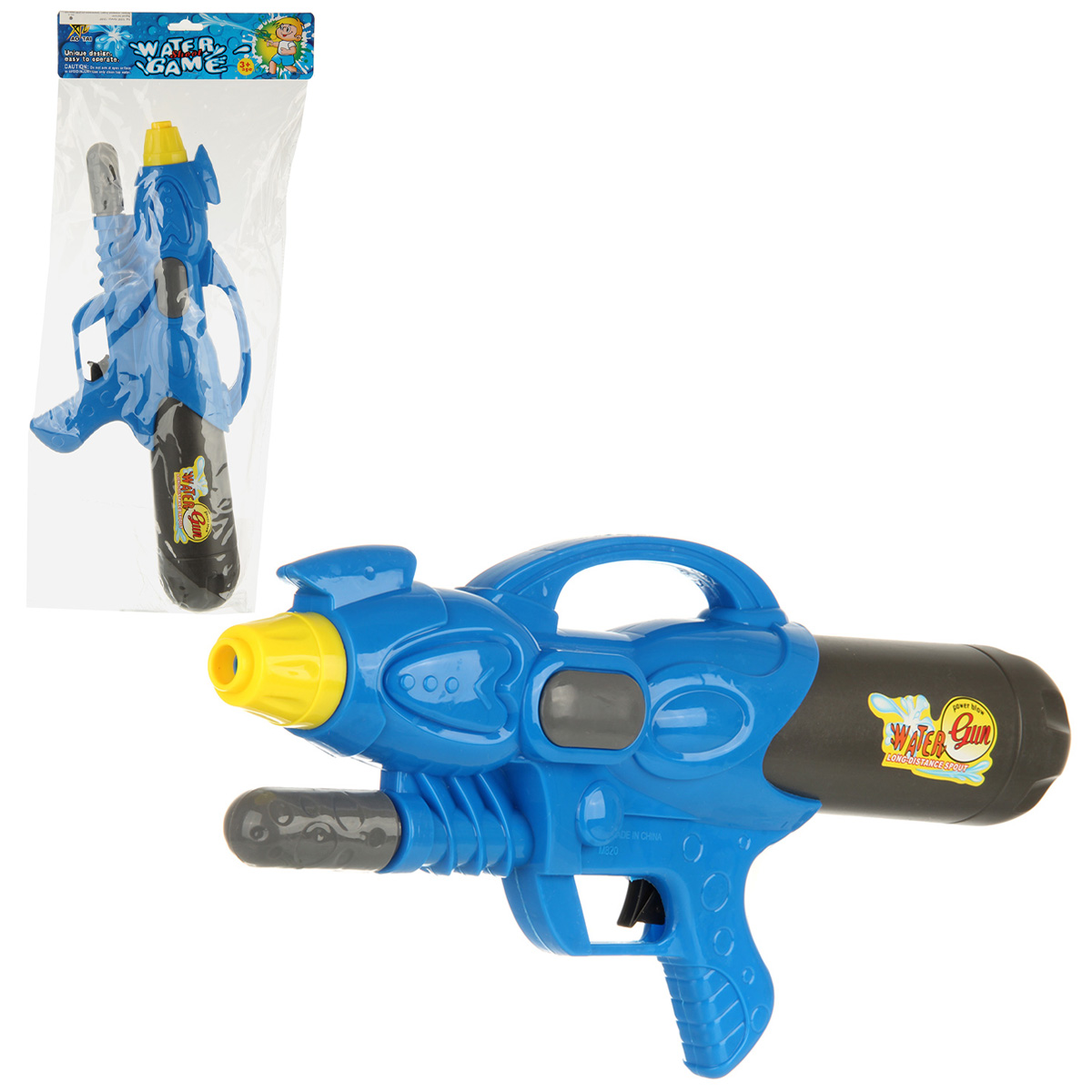 Откручиваем резервуар, наполняем водой. Возвращаем резервуар на место. Для выстрела передвигаем ручку под стволом и нажимаем на спусковой крючок, оружие выстрелит водой. Полимер. Объем резервуара 600 мл. Дальность выстрела от 5 до 7 метров Размер оружия 43х7х20 см. Размер упаковки 22х7х54 см.