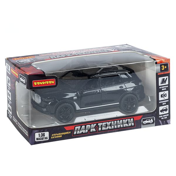 Машина инерционная металлическая "КРОССОВЕР" открываются двери и багажник, М1:36, черный, Парк Техники Bondibon