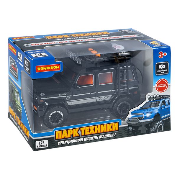 Машина инерционная ВНЕДОРОЖНИК "ПАРК ТЕХНИКИ", со светом и звуком, открываются двери, черный, 1:28, Bondibon