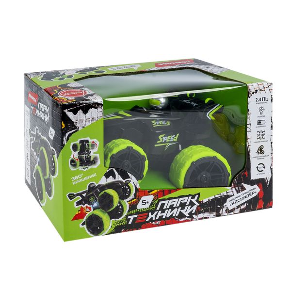 Машина трюкач радиоуправляемая "КАСКАДЕР", со светом, на аккумуляторе, черно-зеленая, Парк Техники Bondibon