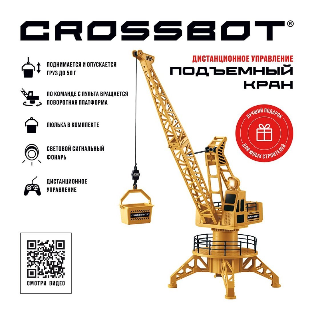 Подъемный кран д/у, вращение платформы 360?, подъем, опускание грузов, свет, высота 60см