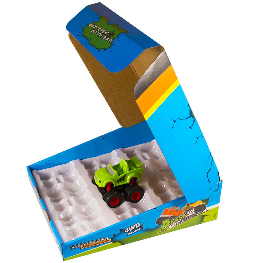 Инерционная машинка размером 10,5*9,5*8,5 см с образом, схожим со ВСПЫШем. Машинка поставляется в дисплее по 9 шт. в 3-х цветах: желтом, зеленом, красном. Функционал: движение вперед, вращение на задних колесах (аналог арт. 806B).