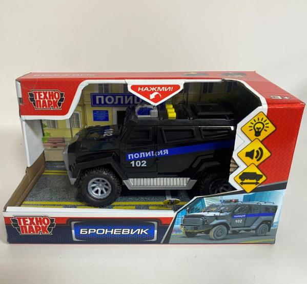 Машина пластик свет-звук БРОНЕВИК ПОЛИЦИЯ 18 см, своб. ход, коробка. Технопарк