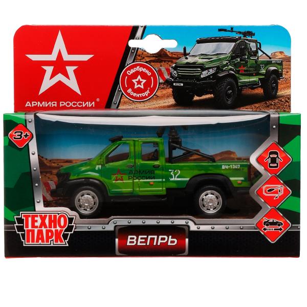 Машина металл ГАЗ ВЕПРЬ АРМИЯ РОССИИ 12,5 см, двери, пулем, инер, кор. Технопарк